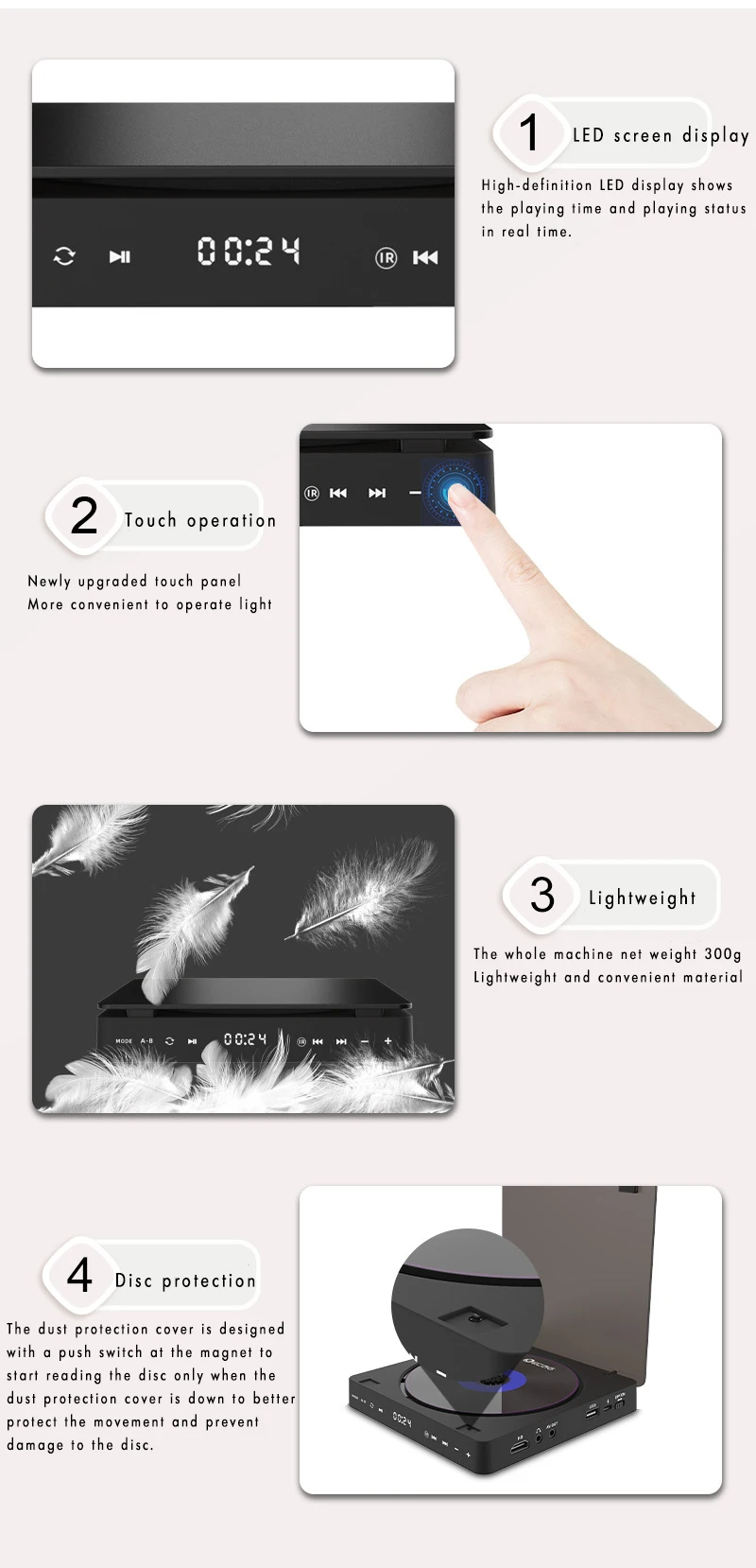 Mini HD CD DVD Players para Casa - Touch Sensor - Frete Grátis e sem imposto
